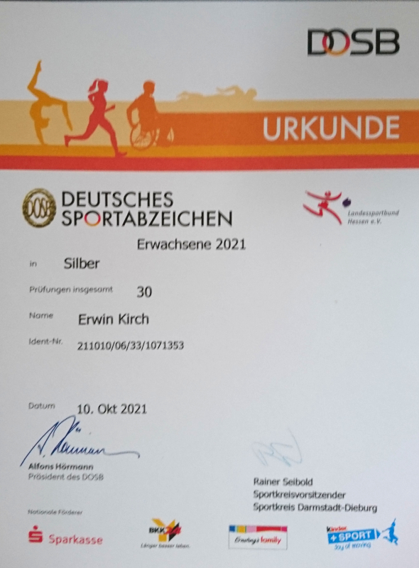 Mittlerer Weile habe ich 34 mal das Sportabzeichen abgelegt.