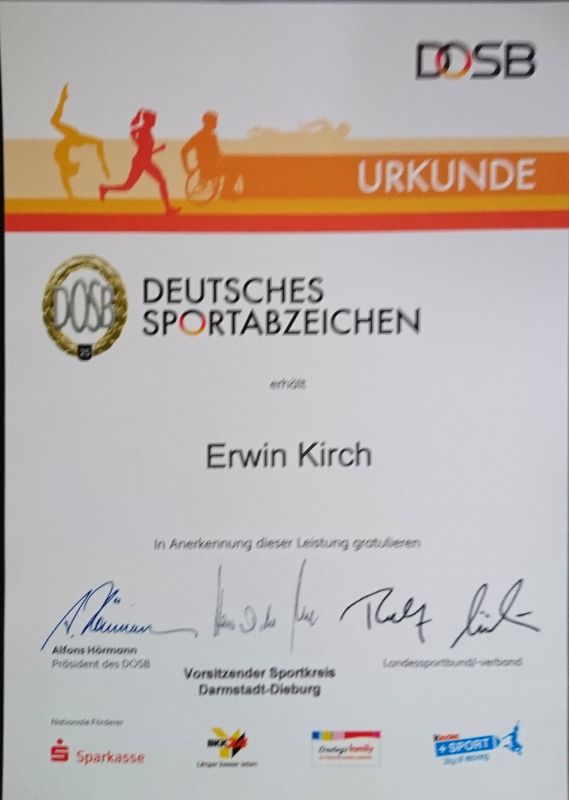 Mittlerer Weile habe ich 34 mal das Sportabzeichen abgelegt.